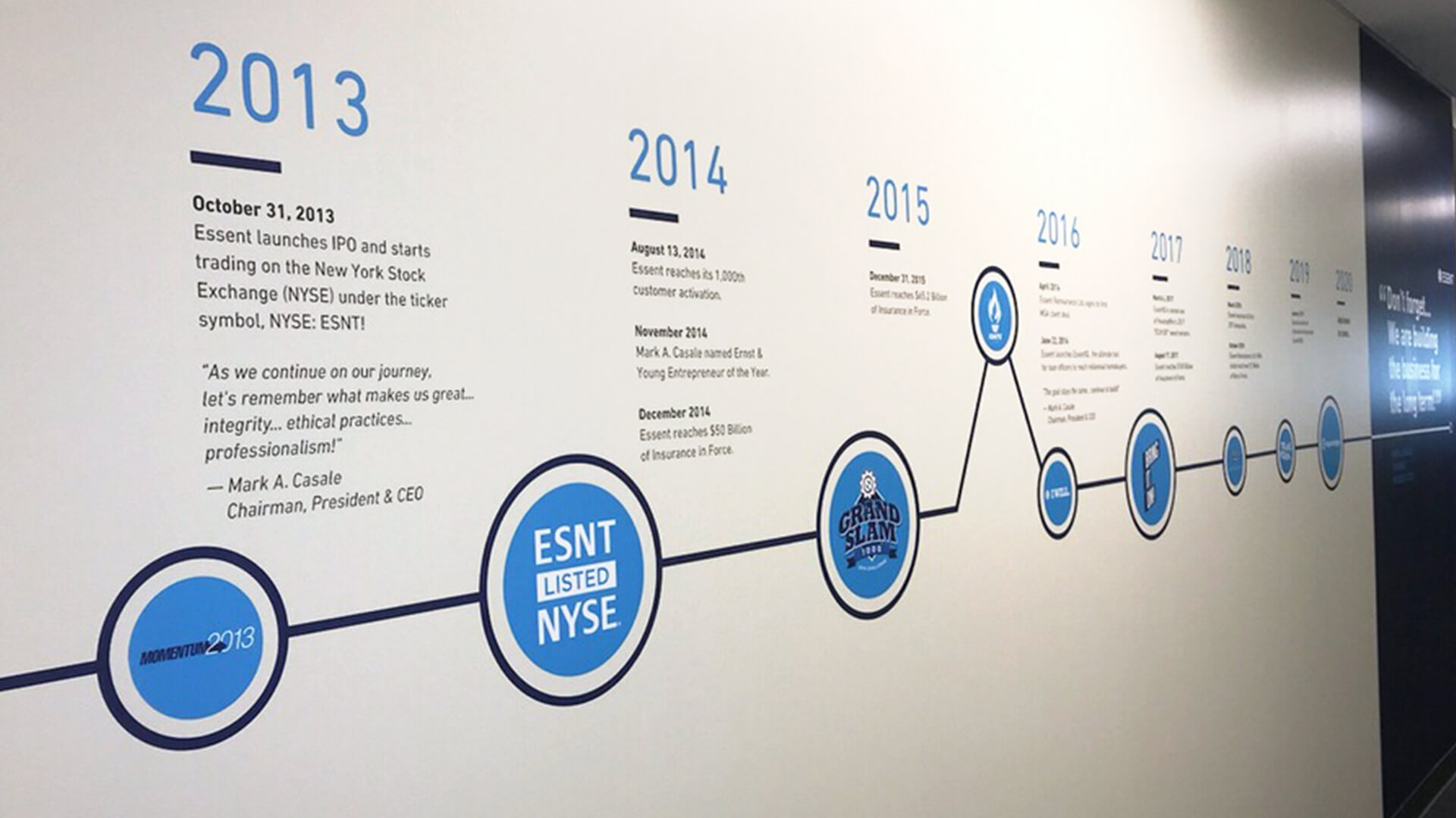 Essent came to life in 2008 in the attic of an ambitious financial thinker. A company focused on private mortgage insurance, they started at a difficult place in the housing industry. Looking for support and guidance with their burgeoning marketing department, Signature stepped in to be that resource. Over the years we’ve done it all, from logo design and brand standards; simple digital webinar flyers and social graphics; convention collateral; and some great video that turned heads in Times Square.